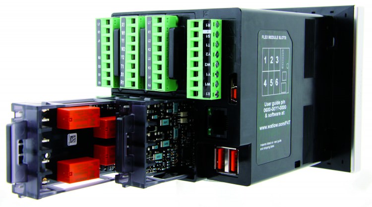 The Watlow F4T with INTUITION® temperature process controller offers a wide range of field removable I/O modules for maximum design flexibility. The F4T controller features a 4.3-inch touch screen panel with integrated functions making navigation easy and intuitive. This device fits in existing F4 panel cutout.
